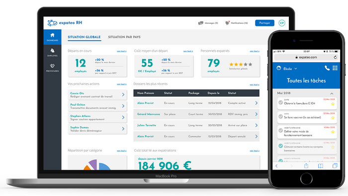 Expateo est une jeune start-up qui développe des solutions digitales RH de gestion de la Mobilité Internationale des talents. Nos solutions SAAS permettent aux équipes RH de gagner en efficacité tout en améliorant l'accompagnement de leurs salariés :