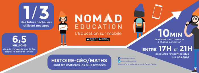 L'éducation sur mobile pour tous. Startup de la EdTech, Nomad Education est le leader de l’éducation 100% mobile et gratuite en France. Nous créons des applications mobiles sur iOS et sur Android pour permettre à tous les collégiens, lycéens et étudiants de réviser gratuitement sur leur mobile. Nous croyons que chacun devrait pouvoir apprendre quand il veut, où il veut, quel que soit son niveau. Nous construisons ainsi une plateforme éducative scalable et une API pour l'écosystème éducatif.
